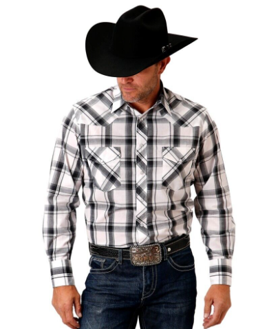 01-001-0101-2000 Roper Mns Karman Classic L/S Plaid Black Shirt