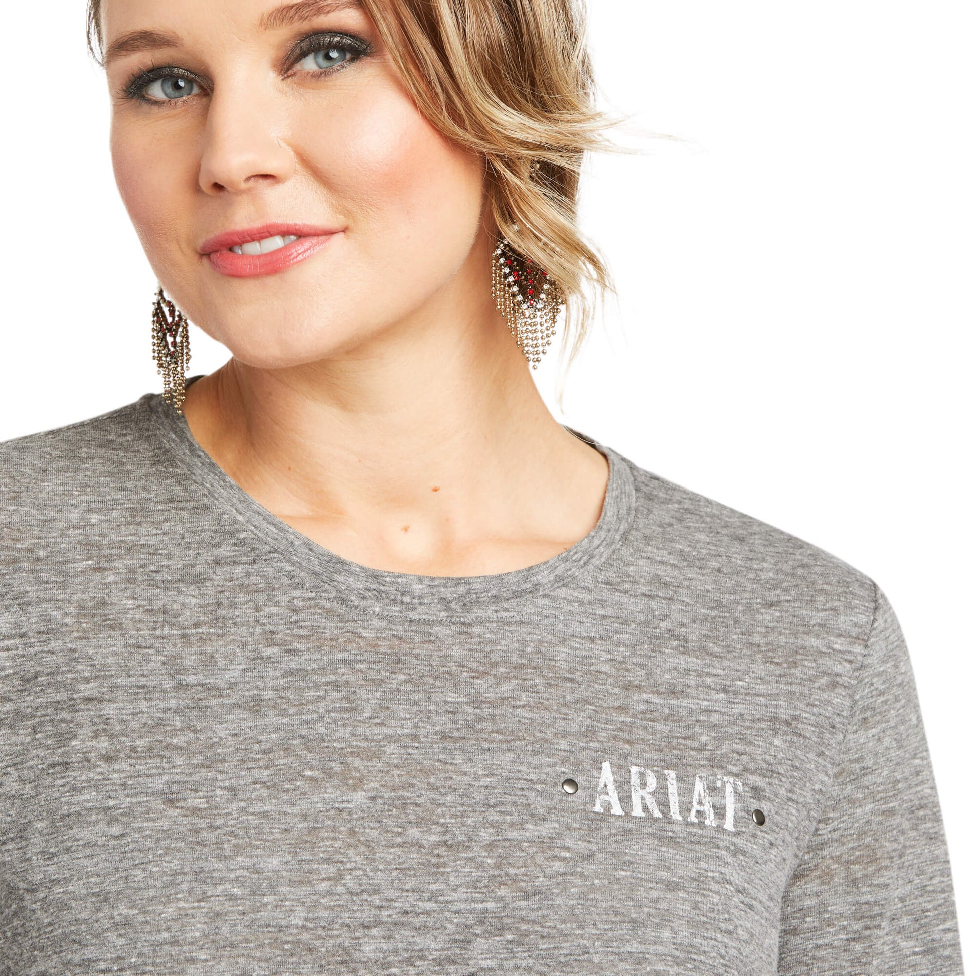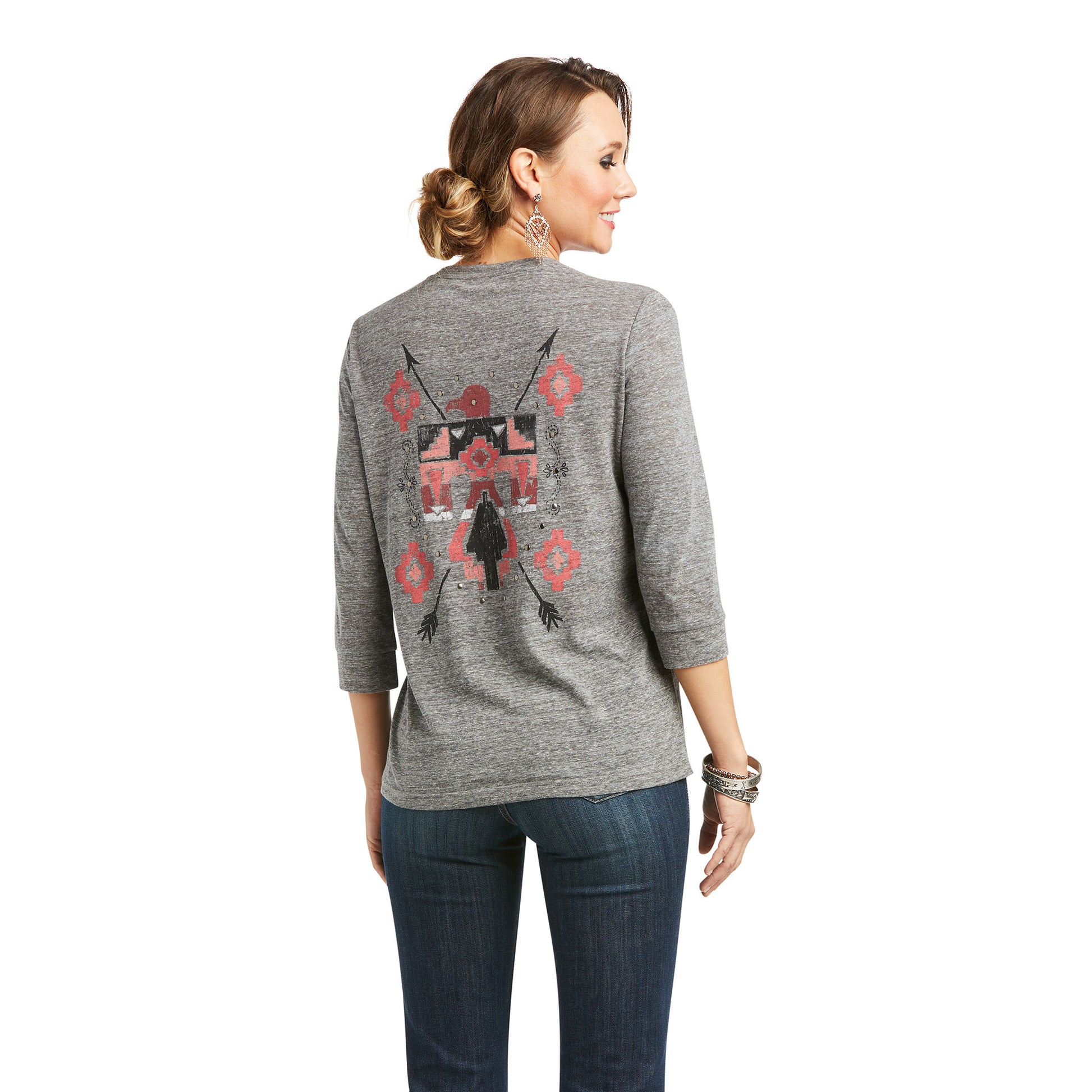 Simple in the front, party in the back. Studs make this super-soft, three-quarter-sleeve tee feel extra special.