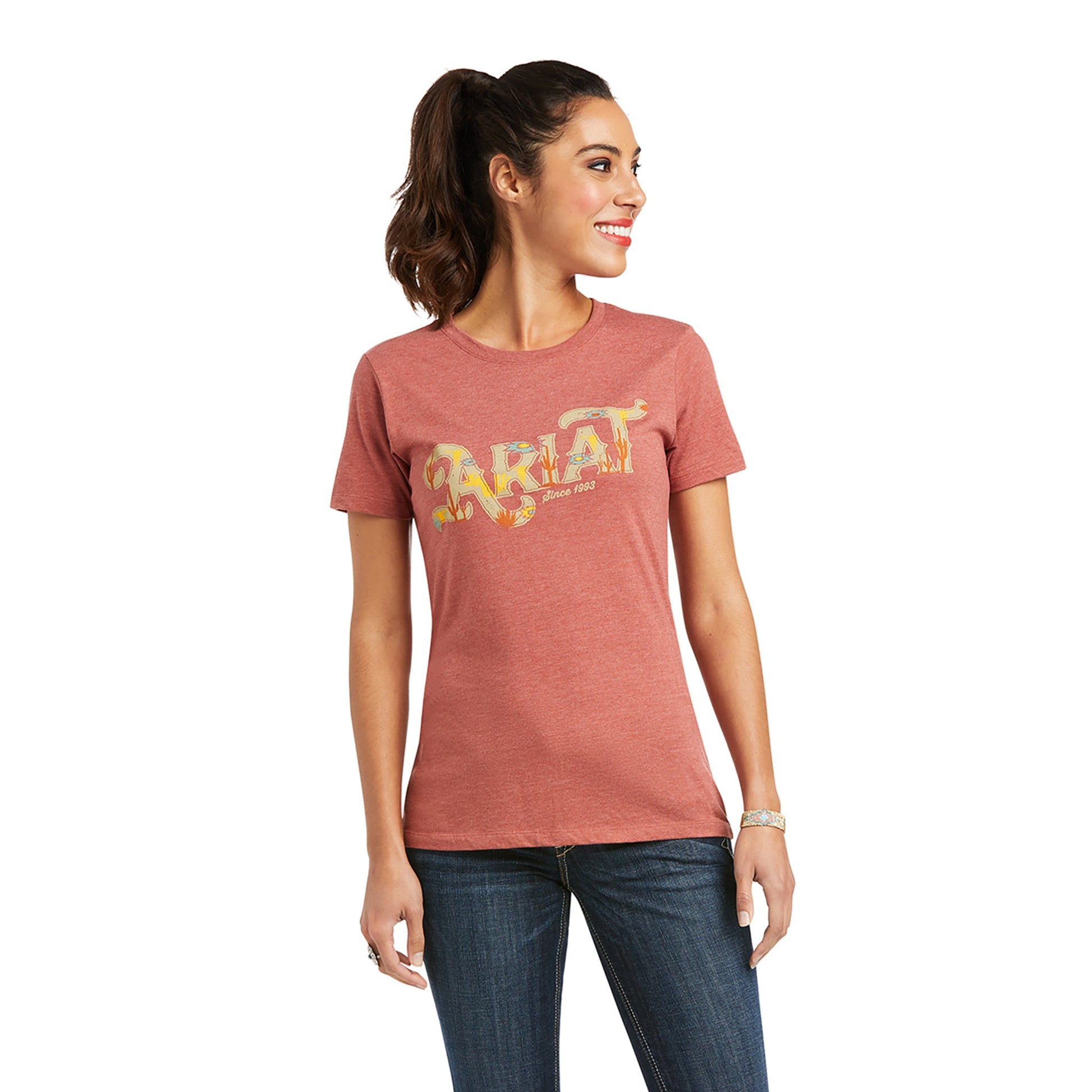 10037796 Ariat Women's Desert Script Tee Red Clay