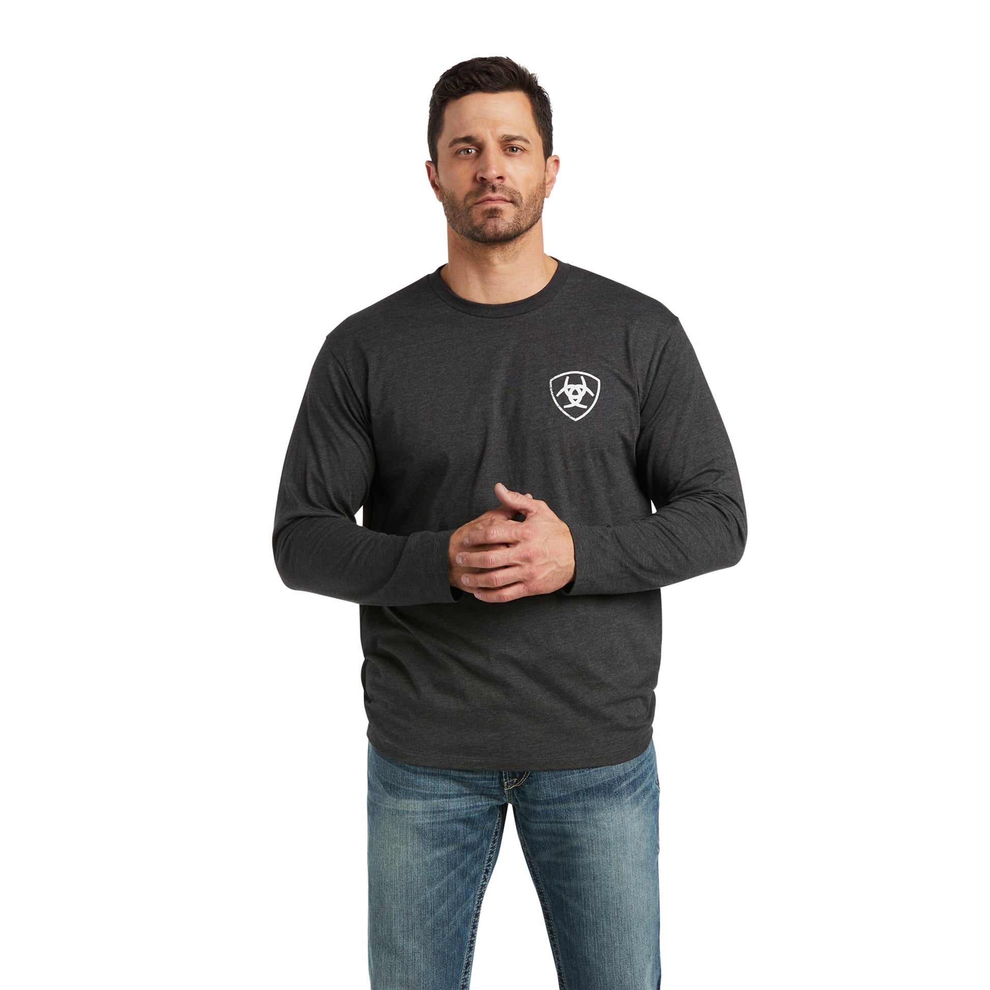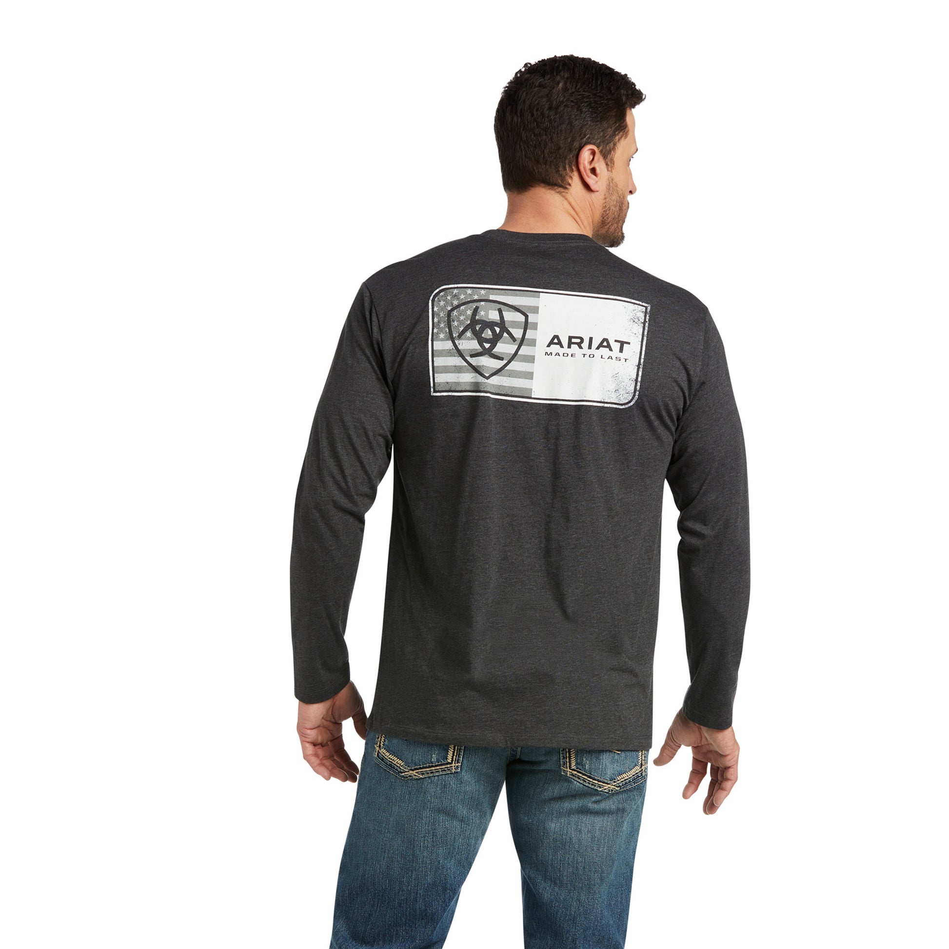 10038191 Ariat Men's Flag Grayscale LS Tee Charcoal Heather