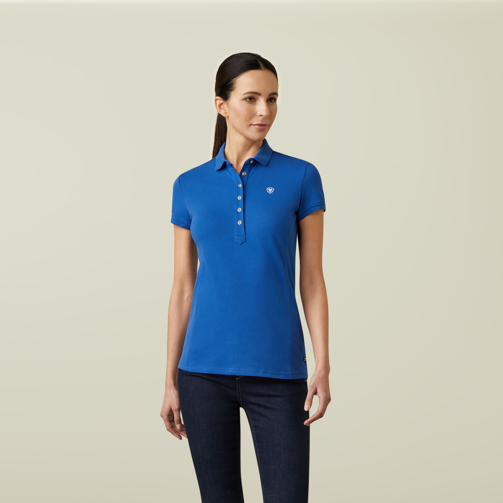 With its long, feminine placket and delicate buttons, this is the perfect polo for every occasion. Crafted from soft, moisture-wicking fabric, it lays beautifully over denim-or tucks into your breeches for a more polished look.