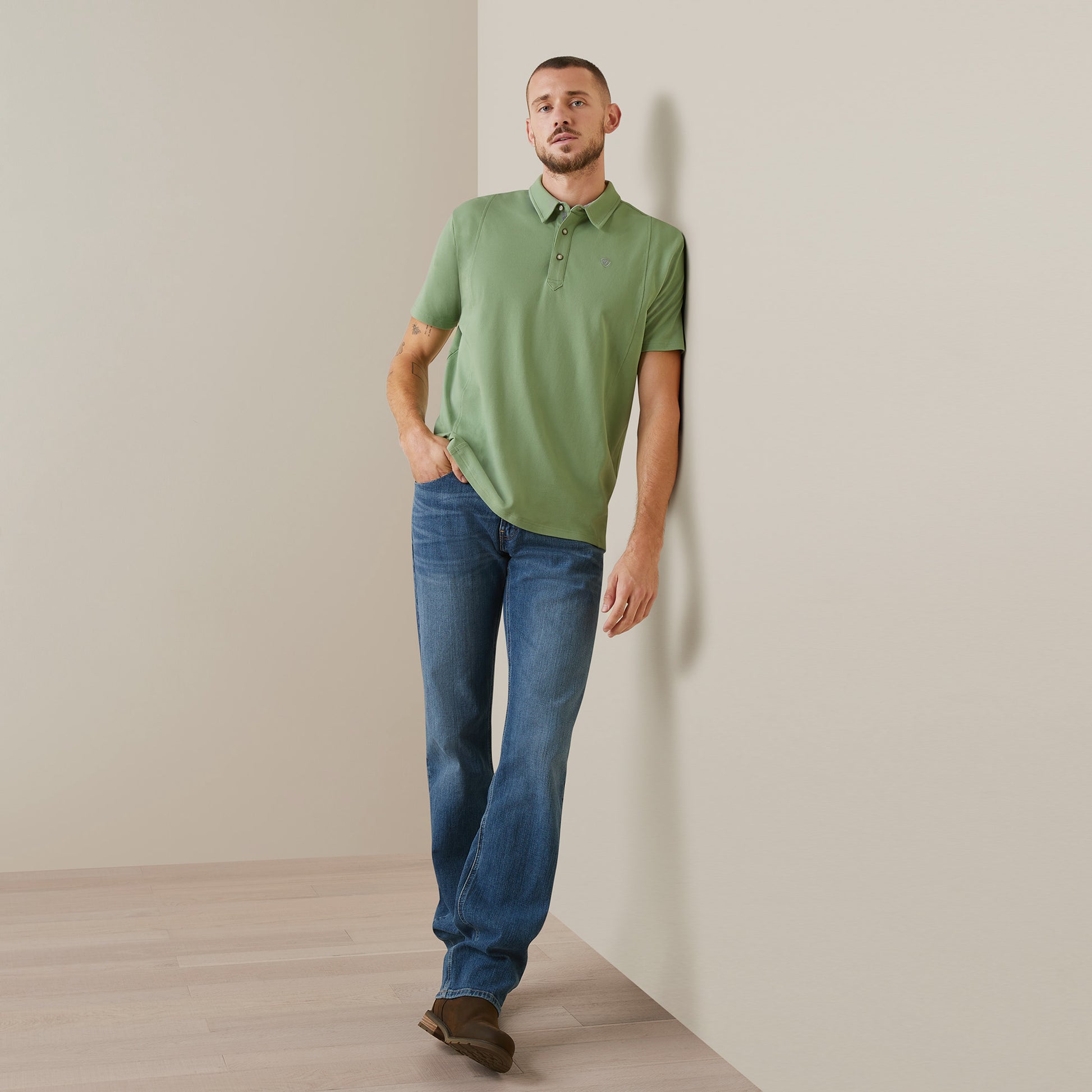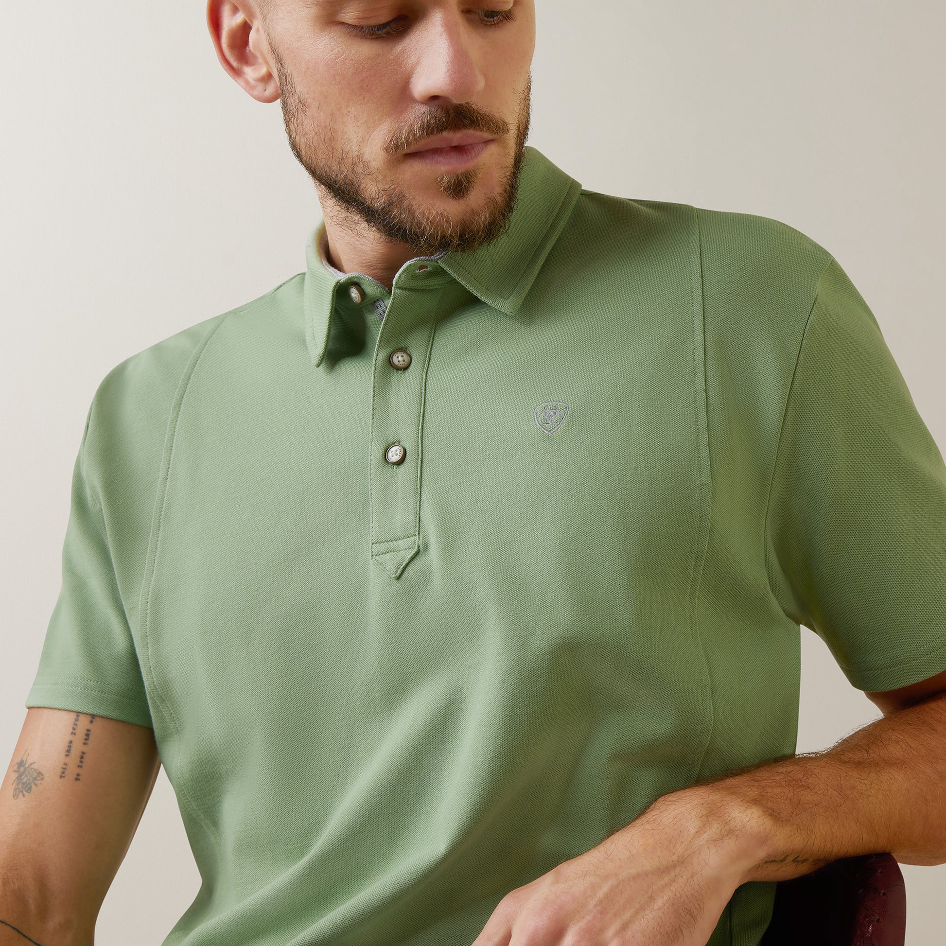 Winning style cut from soft, flexible cotton stretch fabric. This fresh take on the classic riding polo wicks away moisture and provides odor resistance. Polished design accents include grosgrain detailing on the inner button placket and inside the collar.