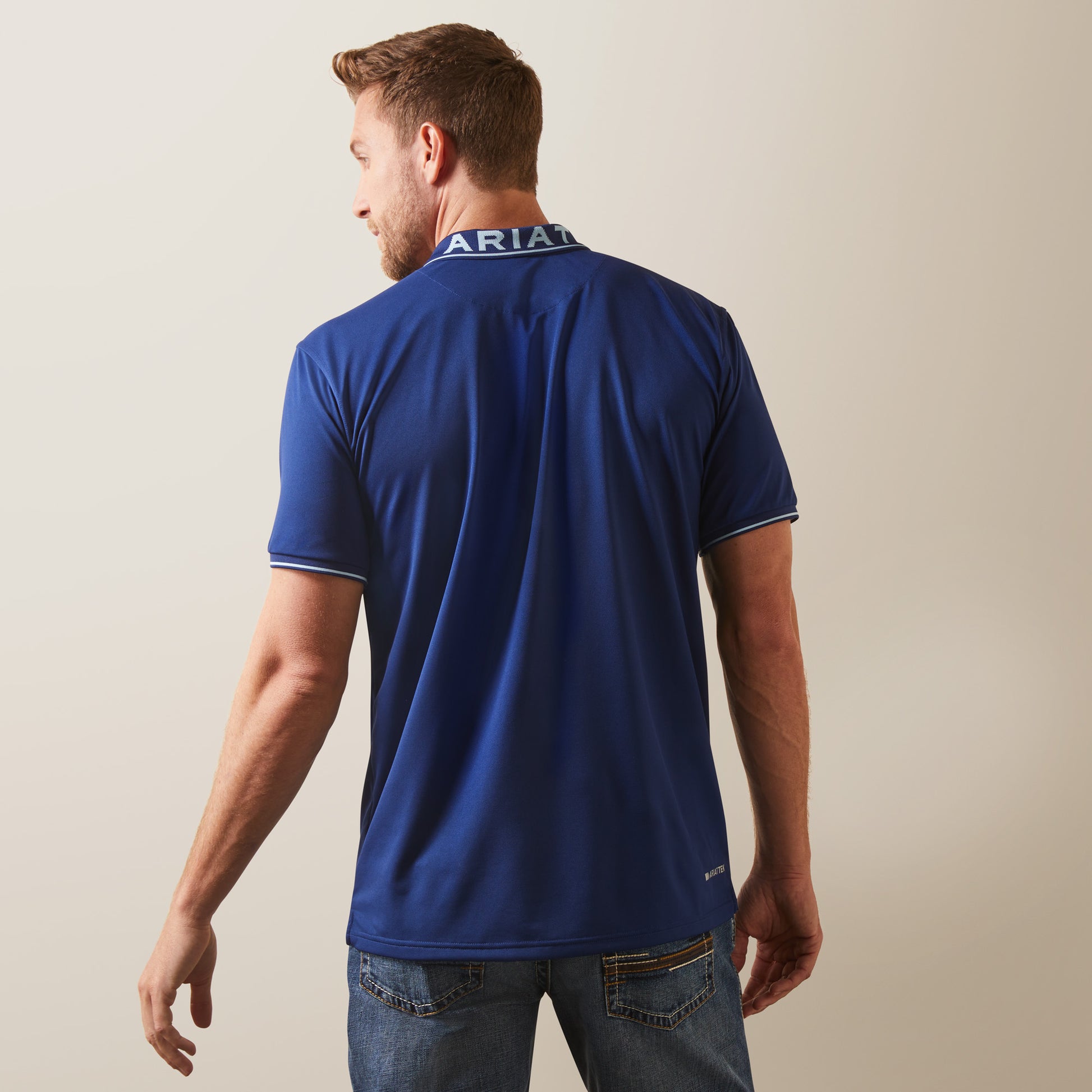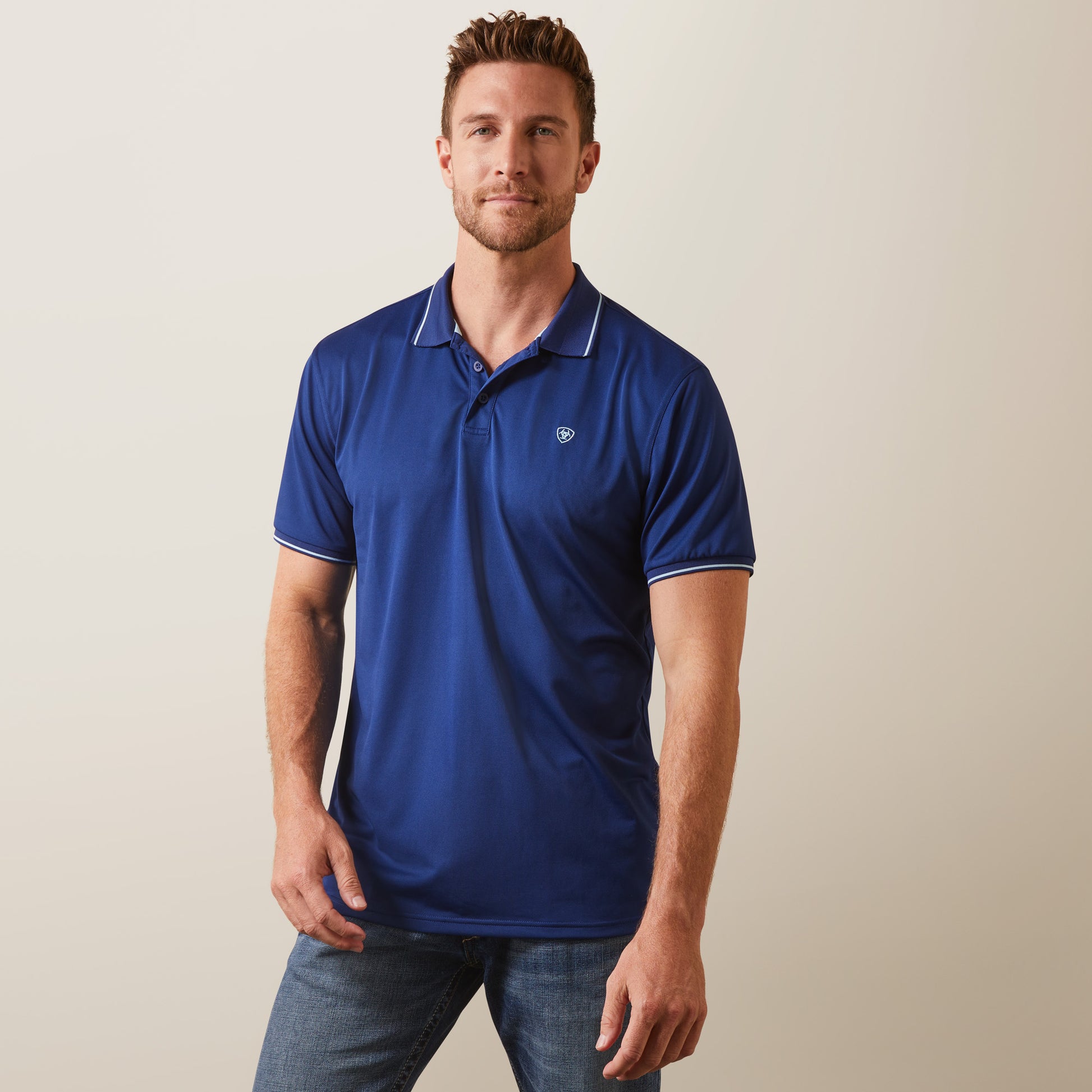 10044345 Ariat Mens Logo Fitted SS Polo Cloudburst Blue