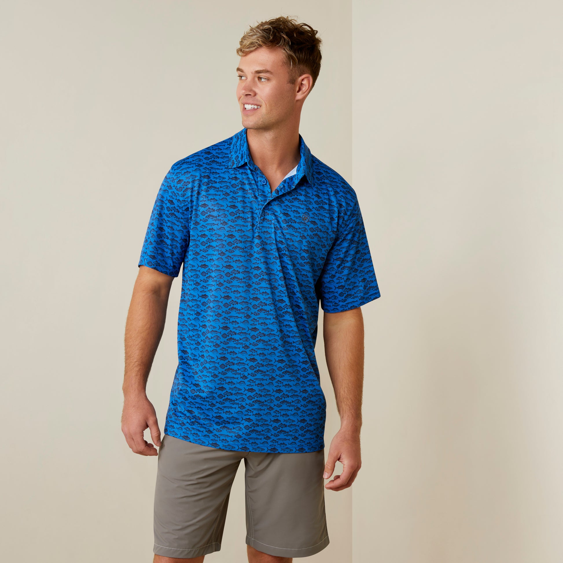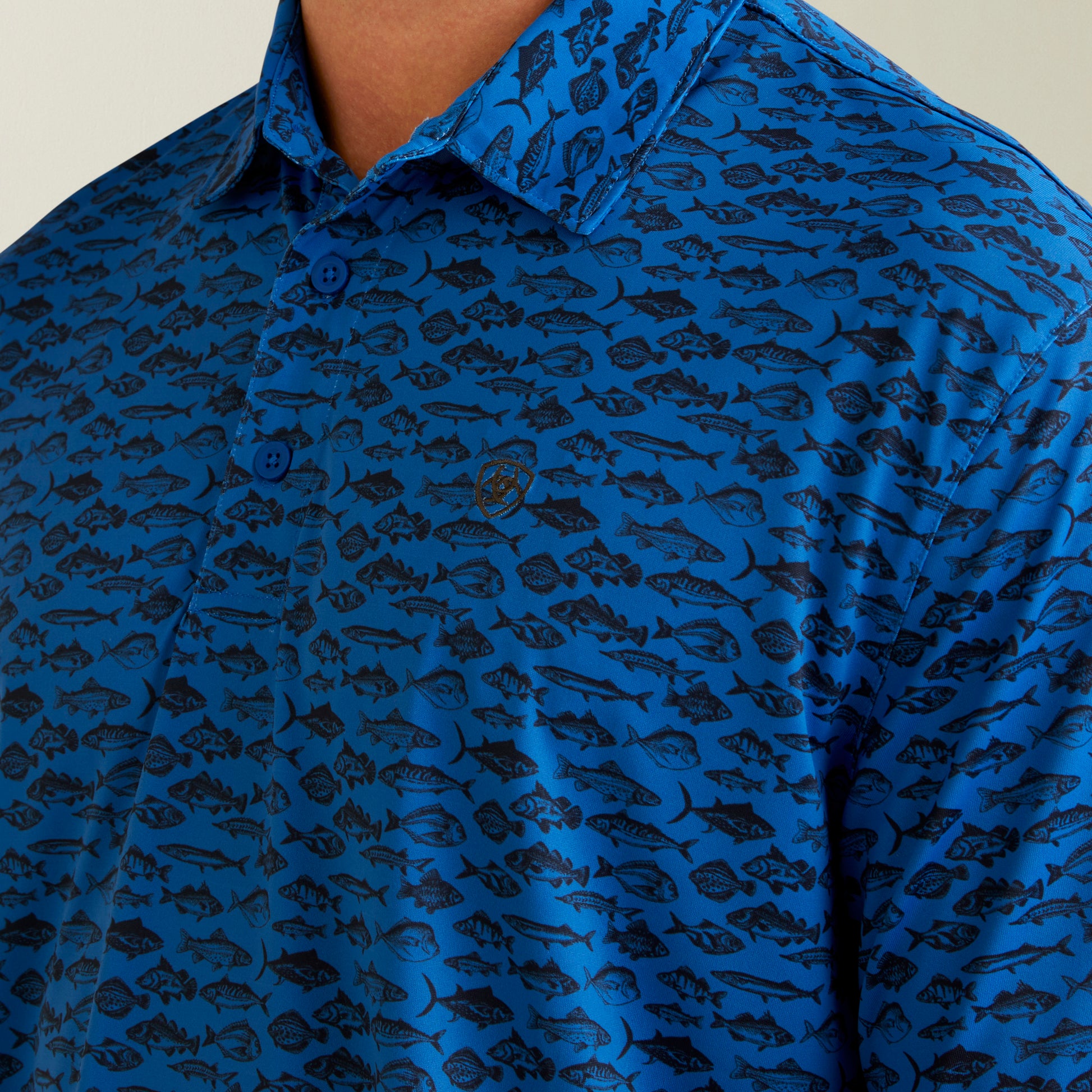 10045030 Ariat Mens All Over Print SS Polo Cendre Blue