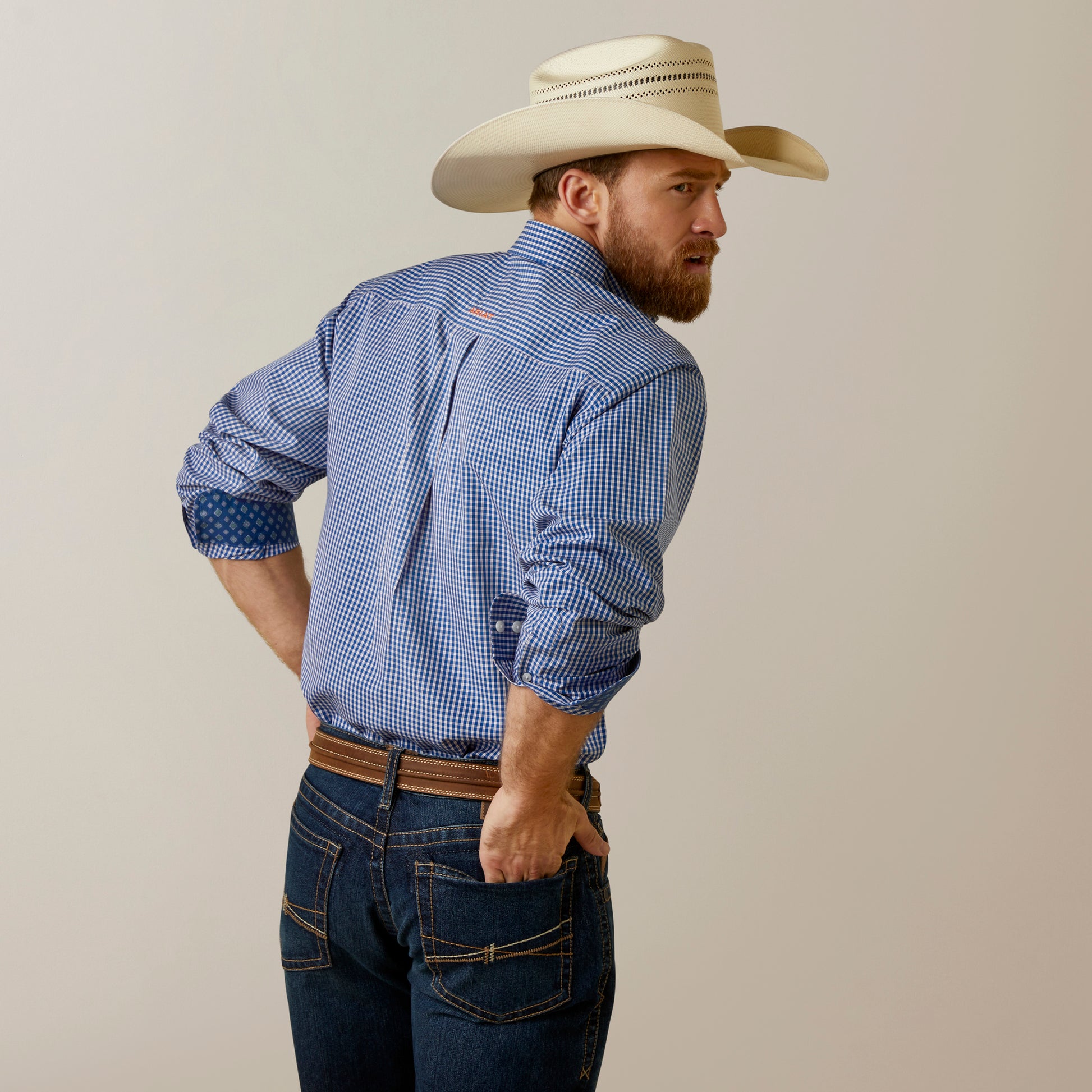 Contrast collar band and cuffs