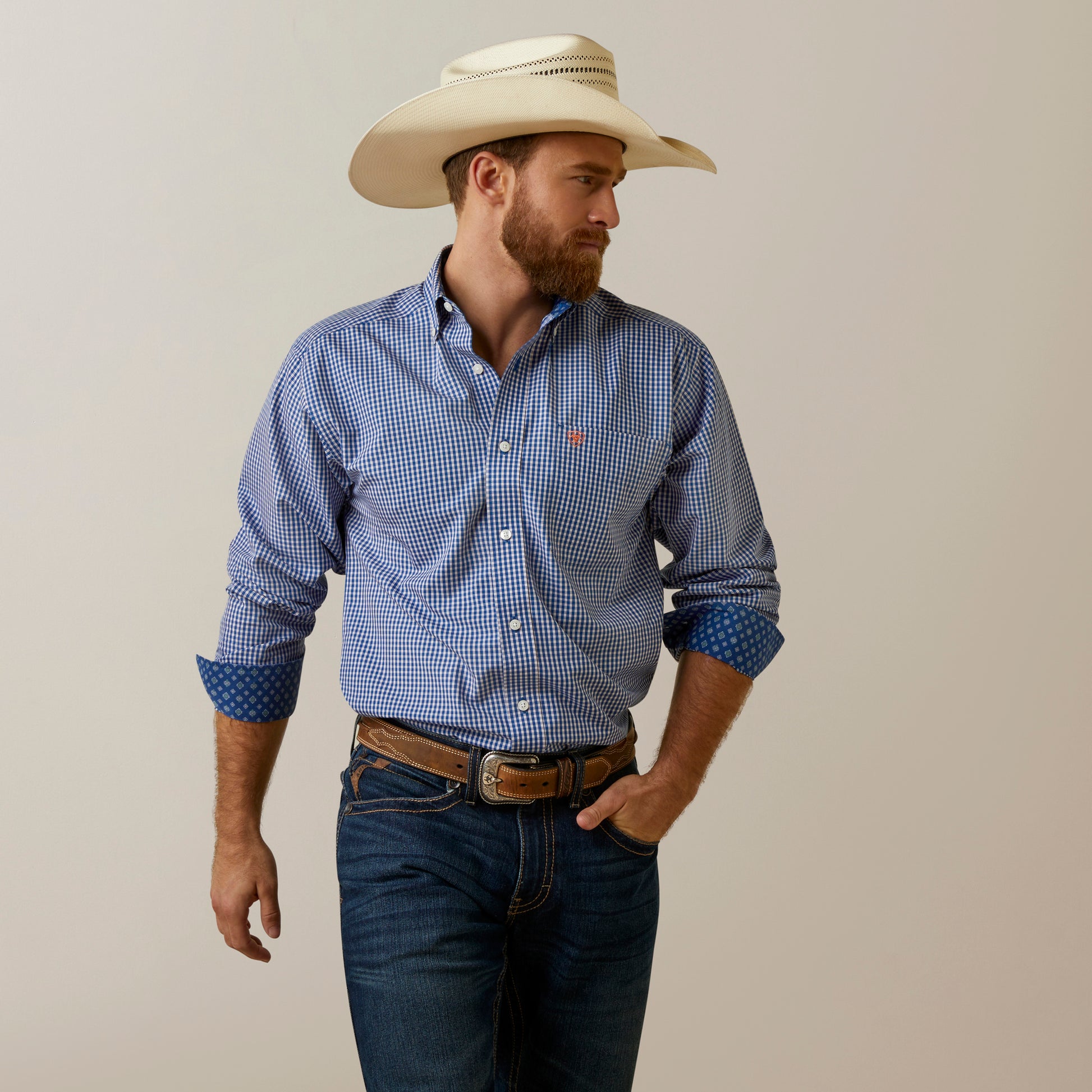 10045067 Ariat Mens WF Finlay Classic LS Shirt True Blue