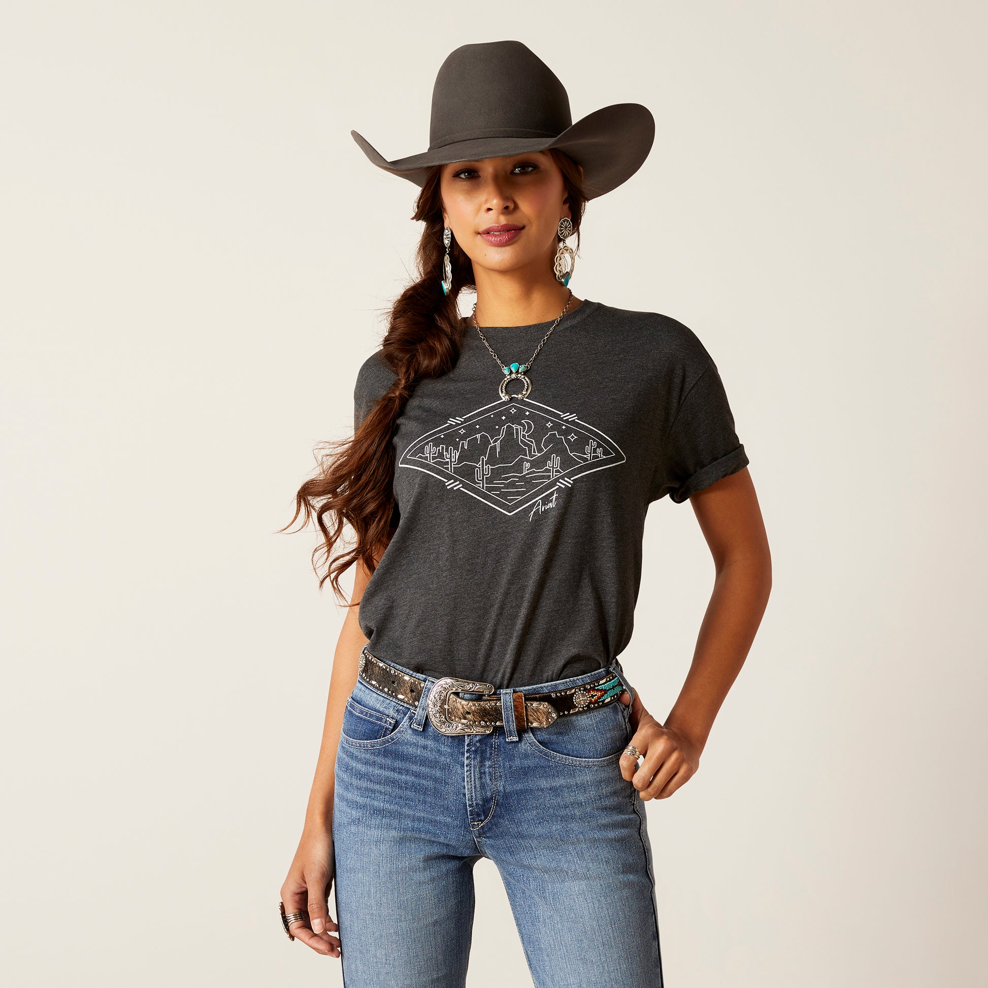 10047639 Ariat Wms Desert Diamond SS Tee Charcoal Heather
