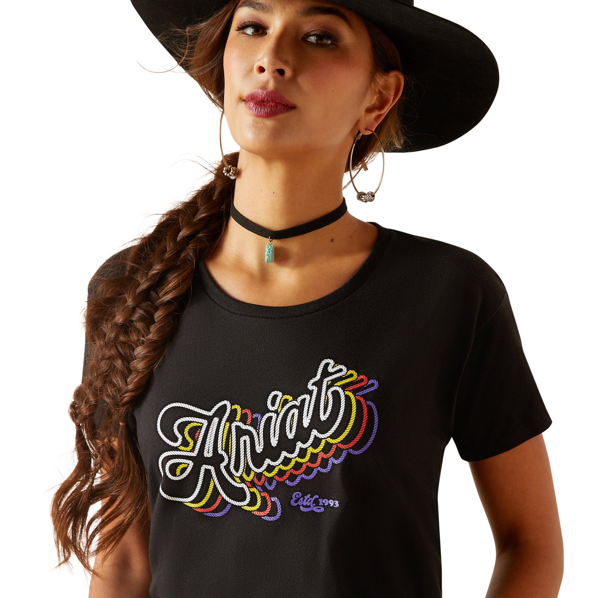 10047927 Ariat Women's Rainbow Script SS T Shirt Black