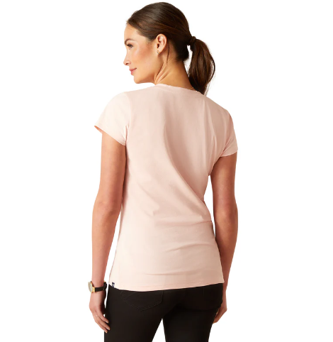 10048603 Ariat Women's Vertical Logo V Neck SS T-Shirt Blushing Rose