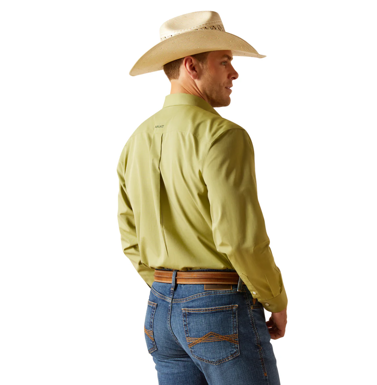 10051325 Ariat Men's Wrinkle Free Solid Pinpoint Oxford LS Shirt Sycamore