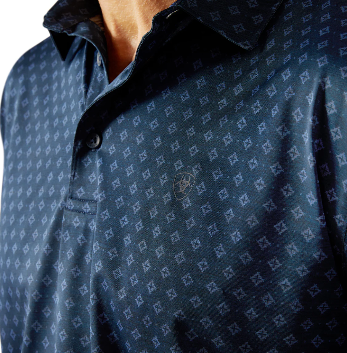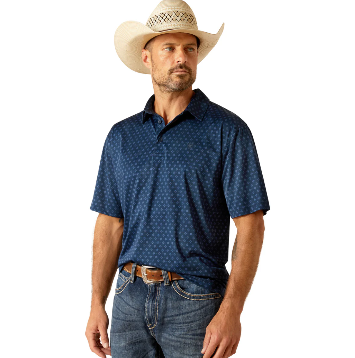 10051372 Ariat Men's Charger 2.0 Printed SS Polo Dress Blues