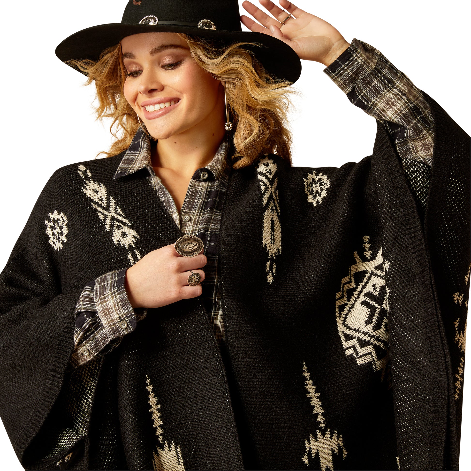 10052047 Ariat Women's Delta Poncho Black/Summer Sand
