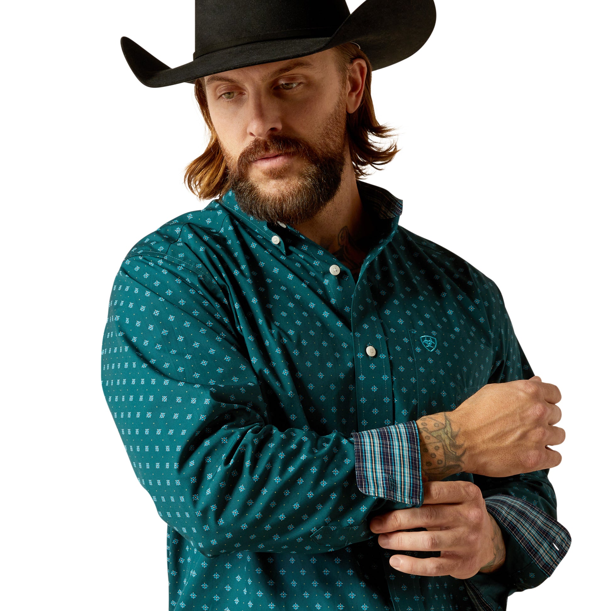 10052374 Ariat Men's Wrinkle Free Gunnar LS Shirt Deep Teal