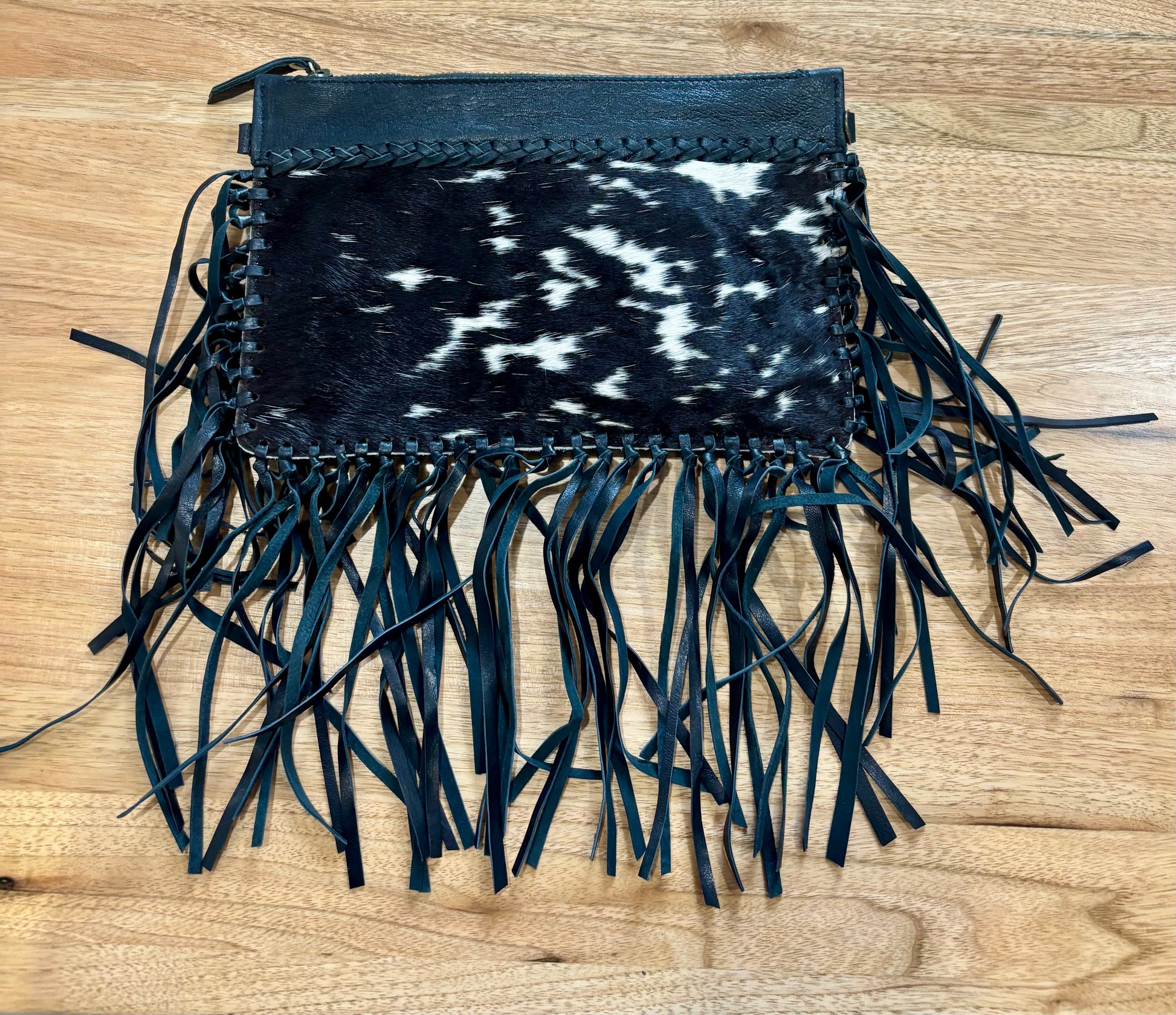 22874 Hide Black & White Fringe Clutch