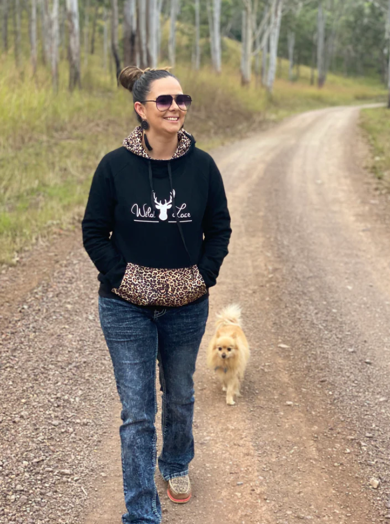29025 Wild Lace Women's Black Leopard Print Hoodie