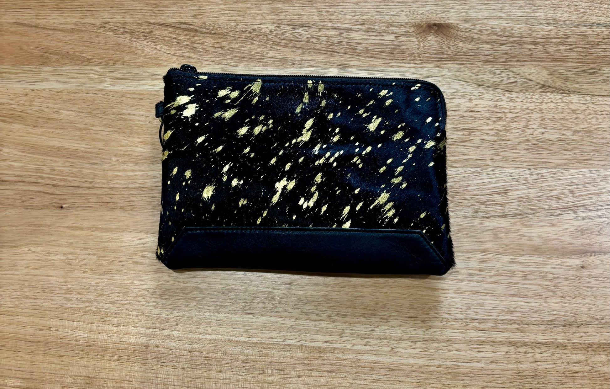 70071F Detroit Gold & Black Hide Clutch