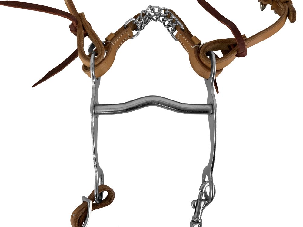 This bridle is designed to be comfortable for the pony, with a stainless-steel 5 inch ported mouth bit, and an Argentina cow leather double flat link curb chain. The curb chain comes complete with fully adjustable stainless-steel nickel-plated round, buckle ends.