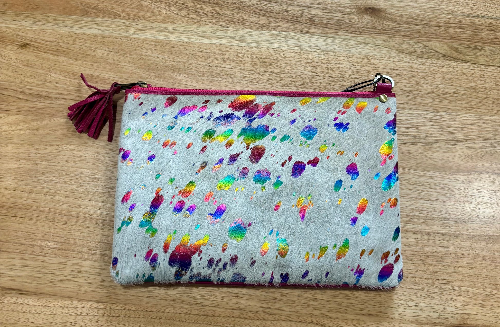 B70030PNK London Multi Foil Hairon & Pink Leather