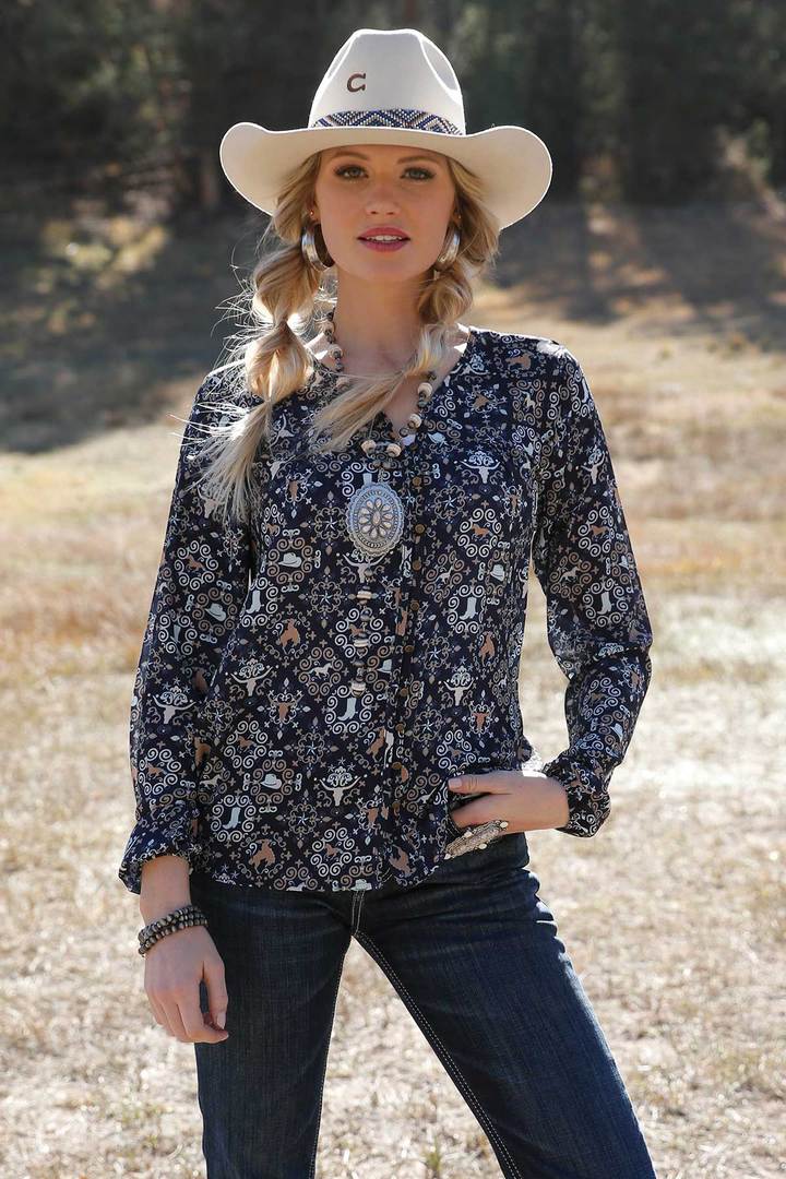 CTW7109002NAV Cruel Horse Pattern Blouse