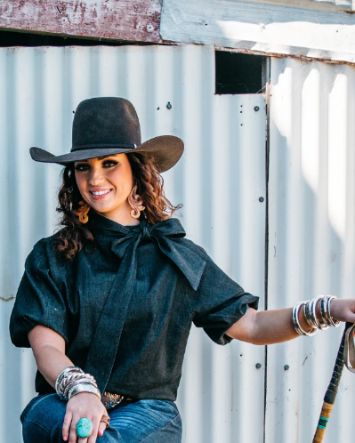 Crafted from a classic black stretch denim fabric, this statement shirt is on point with its cut and signature tie neck. It can be effortlessly tucked into jeans for a chic look or left out over skinny jeans with flats for a relaxed vibe. The elasticised panel sleeve has plenty of volume and can be pushed up the arm and bloused over or worn down in a longer style. Tie at the neck may be tied at the front or the back or can be removed fully. This top is roomy and relaxed in its cut. Models wear XXS.