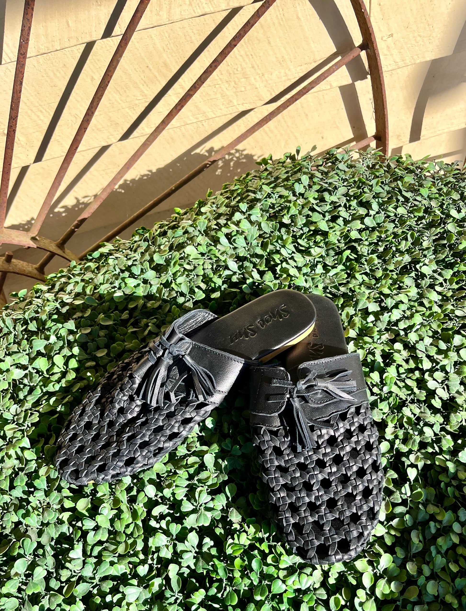 LEAWOVTASSLIBLA Woven Women's Tassel Slide