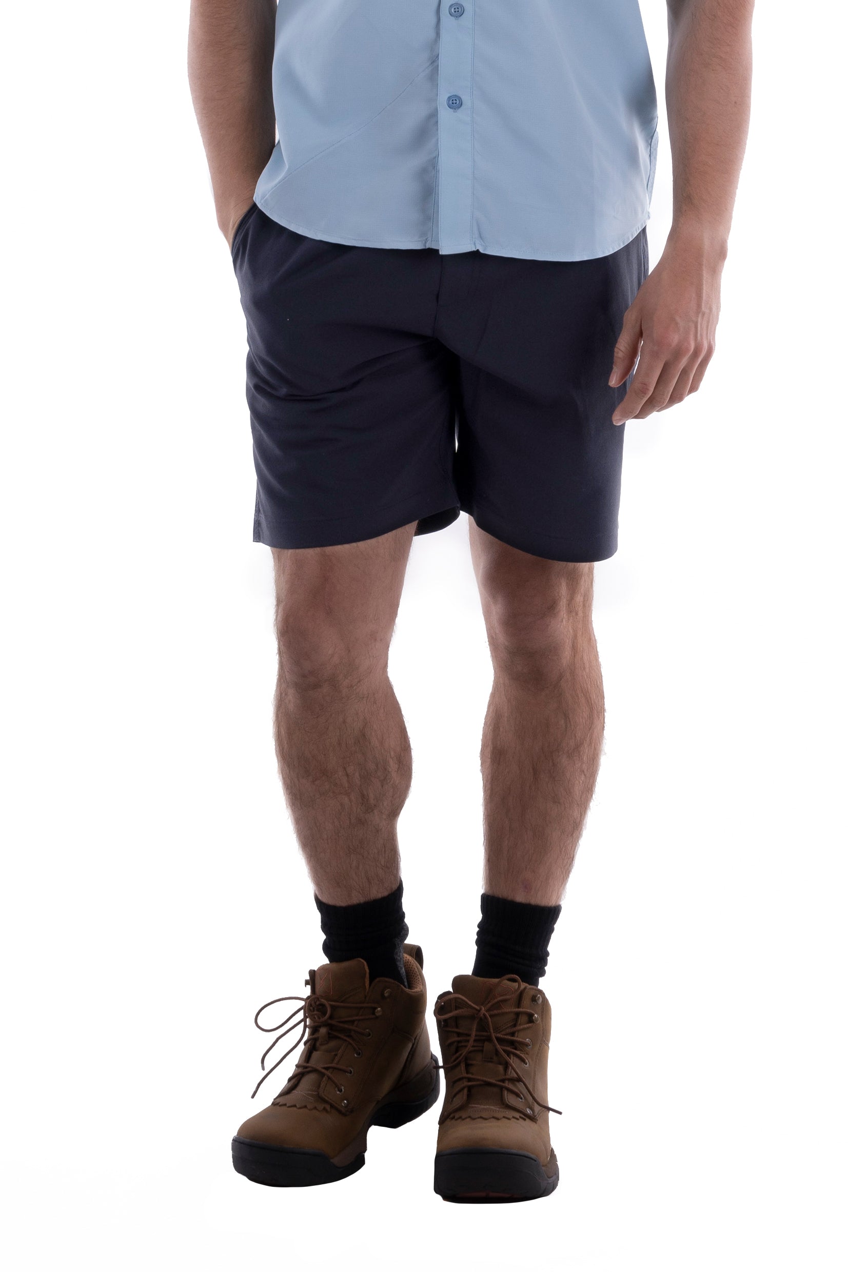 Boardshort style with elasticated waistband, Bamboo/Polyester/Elastane blend for durability, stretch fabric for unrestricted comfort and movement, slant front pockets with zips, concealed zippered back yoke pocket to keep your belongings secure, back welt pockets, mesh lined front and back pockets for airflow, double stitched for strength, internal drawcords, horseman embroidery