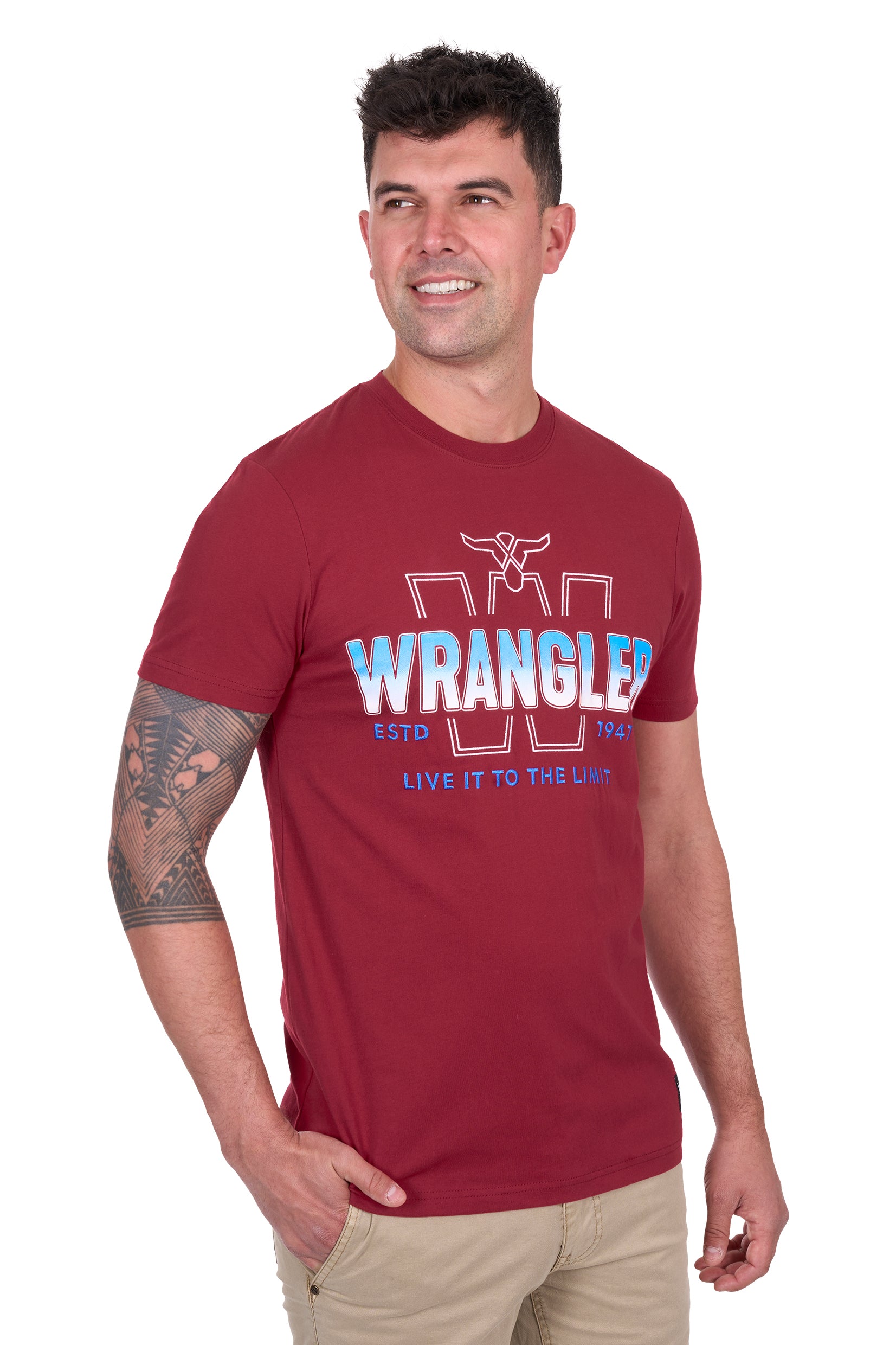 Classic tee shape, rib neck band,Wrangler iconic logo hem label